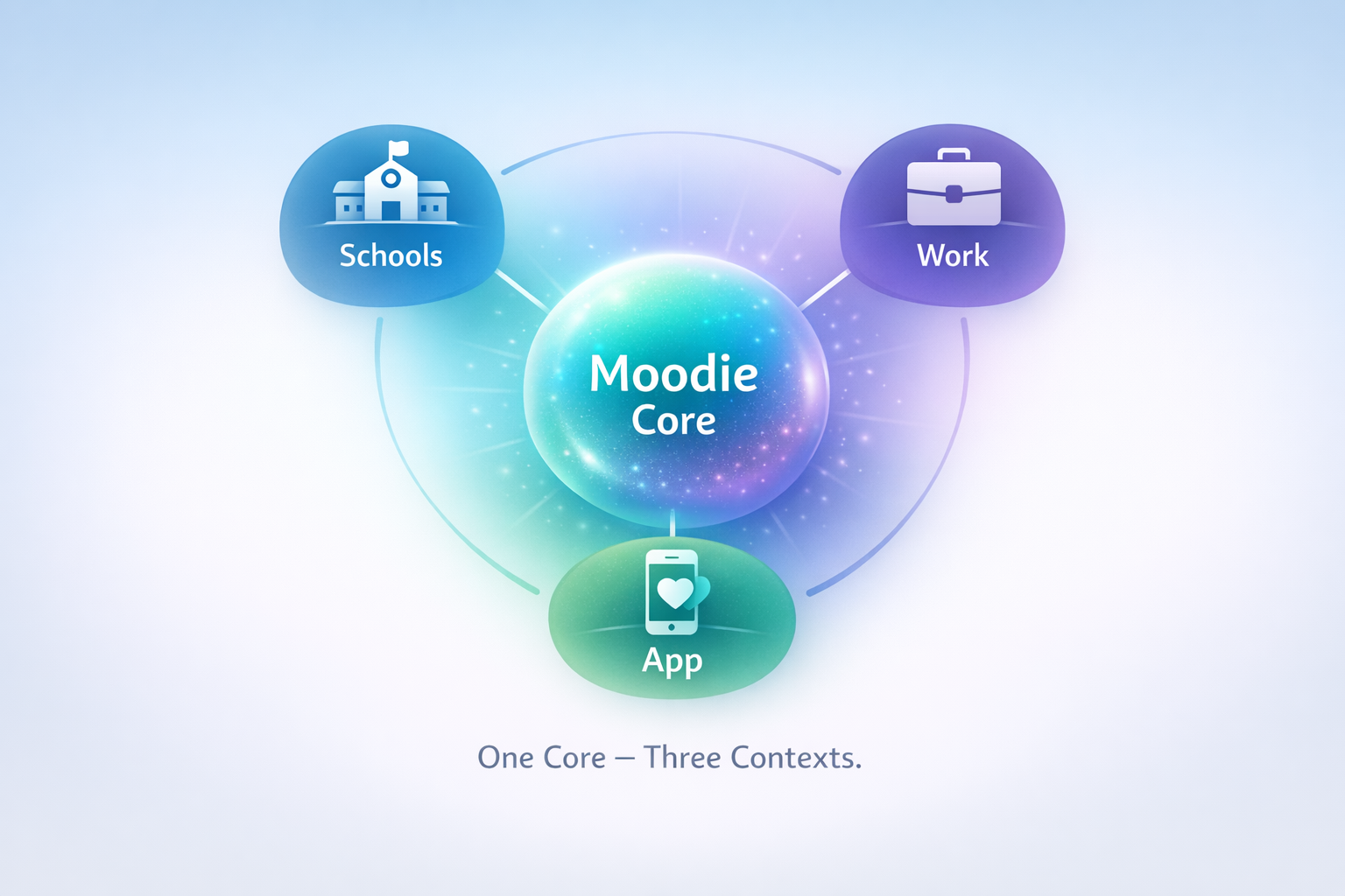 MoodieFlow on digitaalinen tunnetaitojen ja hyvinvoinnin taskuystävä – eettinen ja rauhallinen ratkaisu, joka mukautuu sujuvasti kouluihin, työyhteisöihin ja yksityiskäyttöön korvaamatta ihmistä.